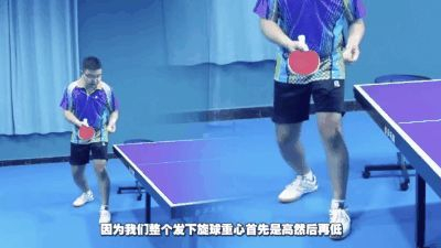 奔下旋发球的动作幅度相对较小,发力方式有点像向肚子砍的感觉。这样的动作幅度有助于保持发球的稳定性和隐蔽性,使对手难以判断球的旋转和落点。